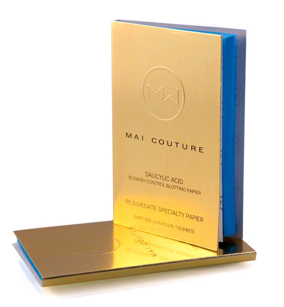 “MAI COUTURE SALICYLIC ACID BLEMISH CONTROL BLOTTING PAPIER: TREATED WITH SALICYLIC ACID, THESE BLOTTING PAPERS ABSORB EXCESSIVE SHINE WHILE HELPING TO PREVENT FUTURE BREAKOUTS.”