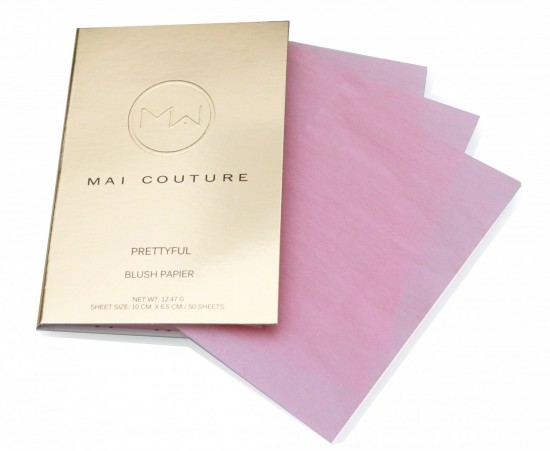“FROM THE GENIUSES THAT BROUGHT YOU 2-IN-1 BLOTTING-BRONZER PAPIERS COME NEW MAI COUTURE BLUSH PAPIERS. YOU GET FIFTY SHEETS OF PAPER, EACH LOADED WITH A LIGHT, SHIMMERING POWDER BLUSH.”VIA OUTBLUSH.