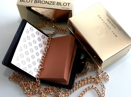 “MAI COUTURE 2-IN-1 OIL BLOTTING BRONZING PAPIER ACTS LIKE A CONVENTIONAL BLOTTING PAPER BUT ADDS A HINT OF SHIMMER AND BRONZE COLOR FOR A HEALTHY GLOW.”