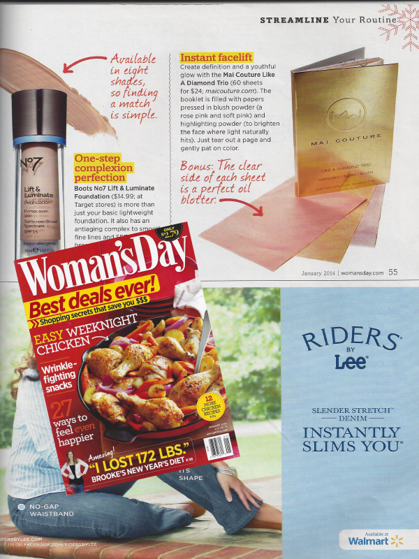 "The secret to preventing a makeup meltdown is to blot away excess oil. In a pinch, a strip of paper torn off a toilet seat cover will work but who wants to carry one around? Try Mai Couture 2-1 Oil Blotting Bronzing Paper…which also deposits a hint of bronzy shimmer as it soaks up the shine."