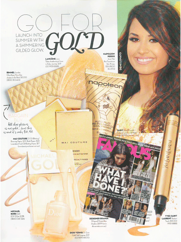 "Bring blotting papers to the beach, notes Osmond. We like the golden sheen from Mai Couture 2-1 Oil Blotting/ Bronzing Paper."