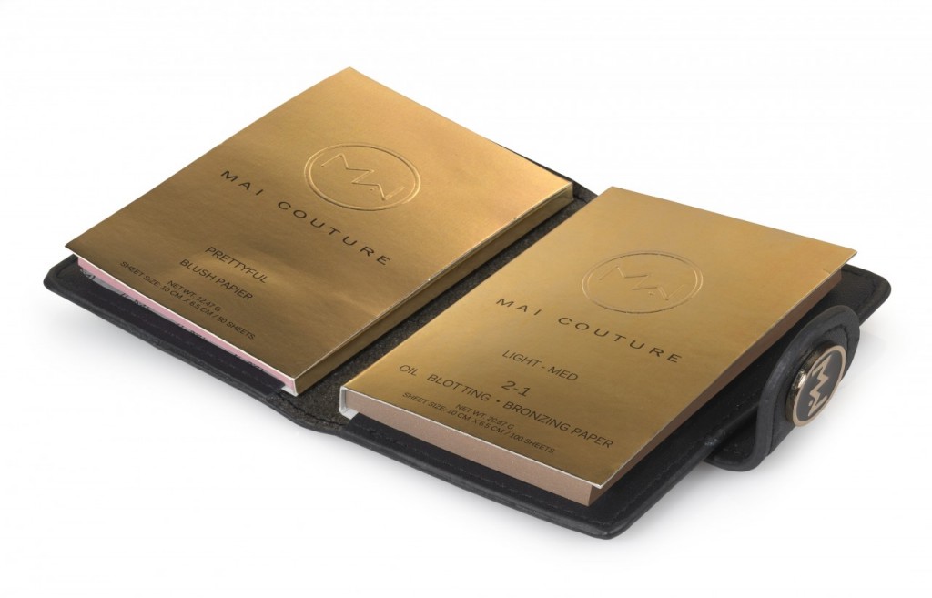 “MAI COUTURE BLUSH PAPIER ARE AVAILABLE IN THREE SHADES WITH A HINT OF SHIMMER AND ARE EASILY APPLIED BY GENTLY PATTING THE PAPER ON THE APPLES OF YOUR CHEEK… BUT THE MAI COUTURE TAKES IT AN EXTRA STEP BY PLACING THE PAPERS IN AN ELEGANT CARRYING CASE WHICH RESEMBLES A WALLET OR AN IPHONE CASE, PRETTY DARN SLICK IN MY OPINION.”VIA MUSING OF A MUSE.